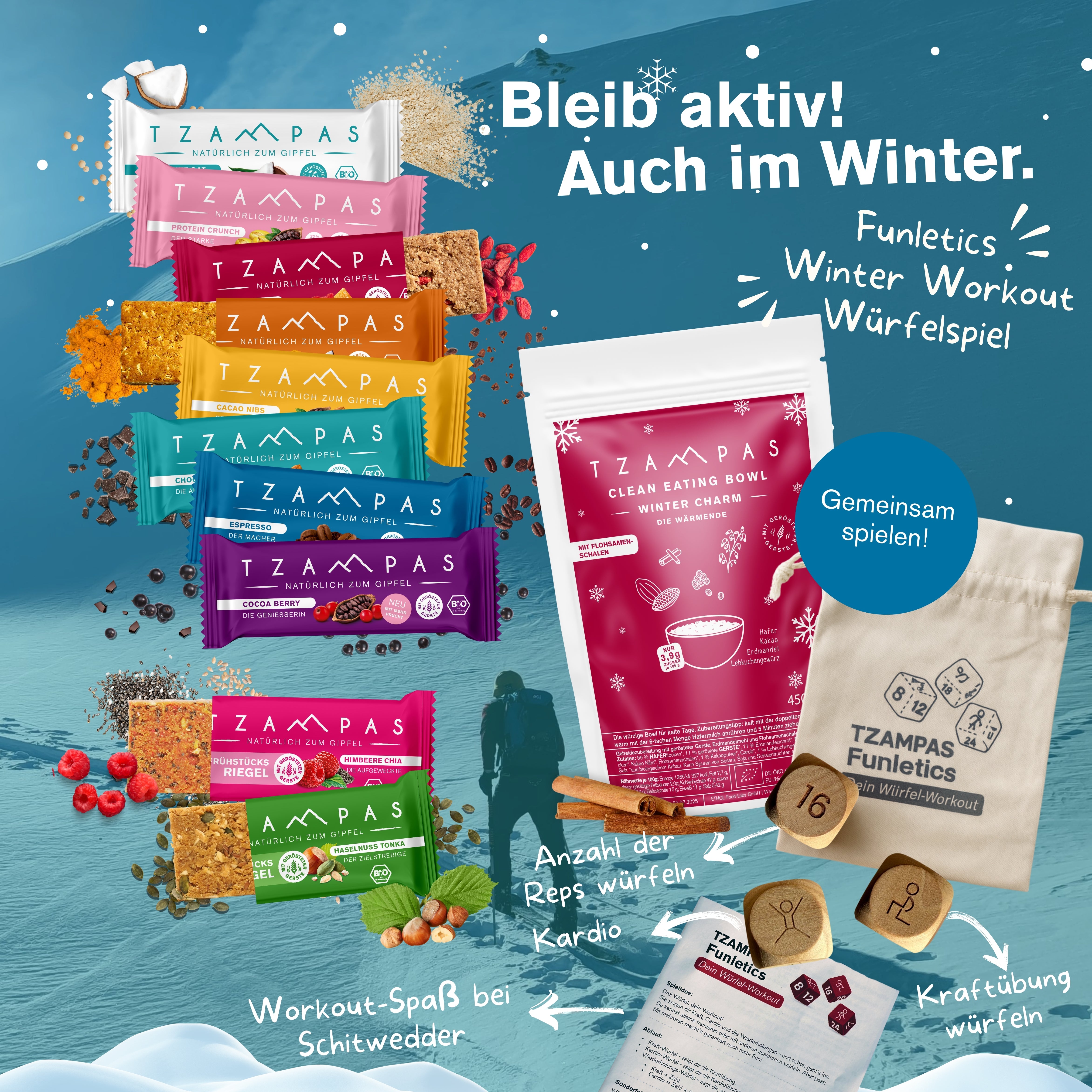 TZAMPAS Mission ist es, dass dir nie die Energie ausgeht. Egal ob Sportler, Handwerker oder Brainworker - unser Ziel ist es, dich bei maximaler Leistungsfähigkeit zu unterstützen - und das ohne schlechtes Gewissen, denn unsere Produkte sind aus den hochwertigsten Zutaten und natürlich immer Bio.